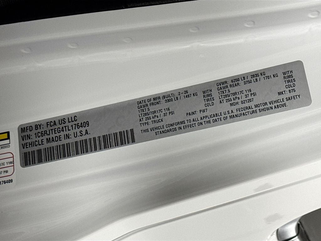 - Gross Vehicle Weight Rating Cap (lbs): 6250