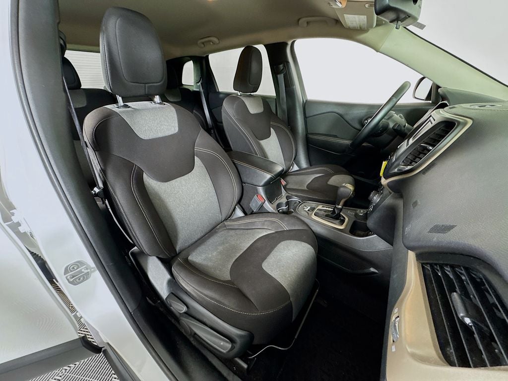 The Altitude package elevates this Cherokee with a host of premium features, including bi-xenon HID headlamps, a leather-wrapped steering wheel, and gloss black exterior accents that give it a bold, sophisticated presence. Step inside and you'll be greeted by a well-appointed cabin featuring dual-zone climate control, heated front seats, and a Uconnect infotainment system with a 5-inch display.