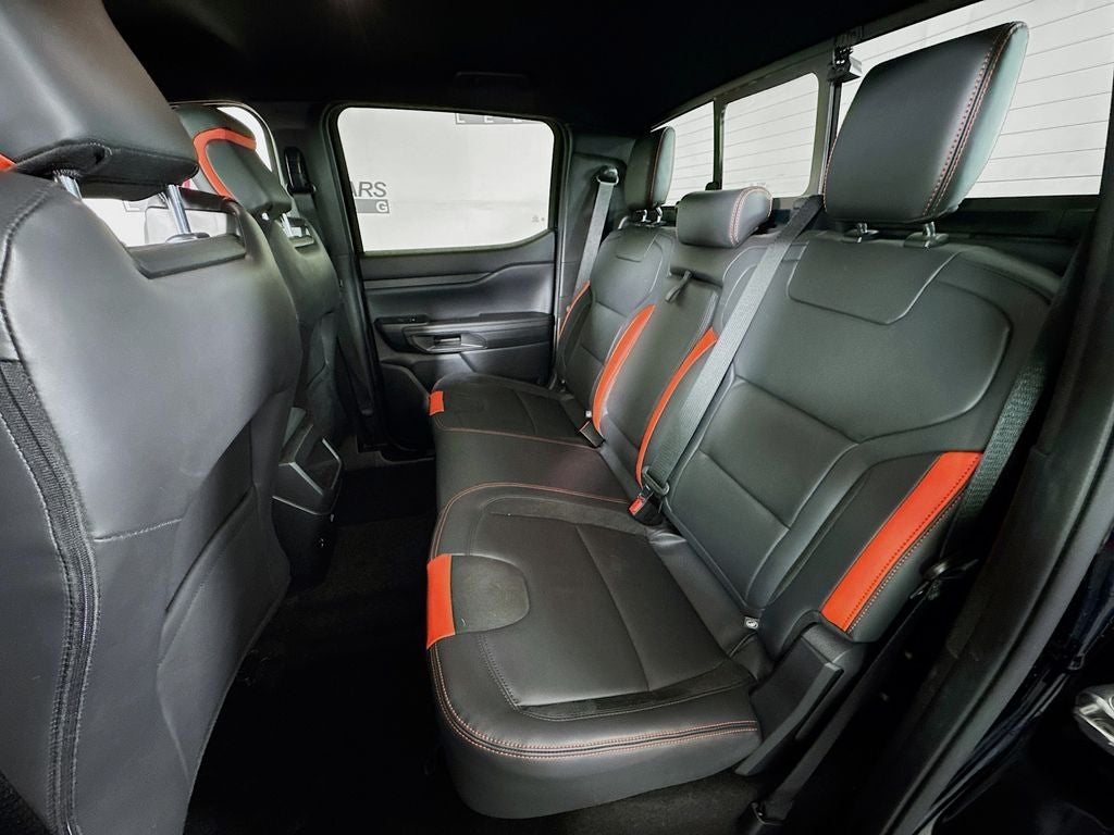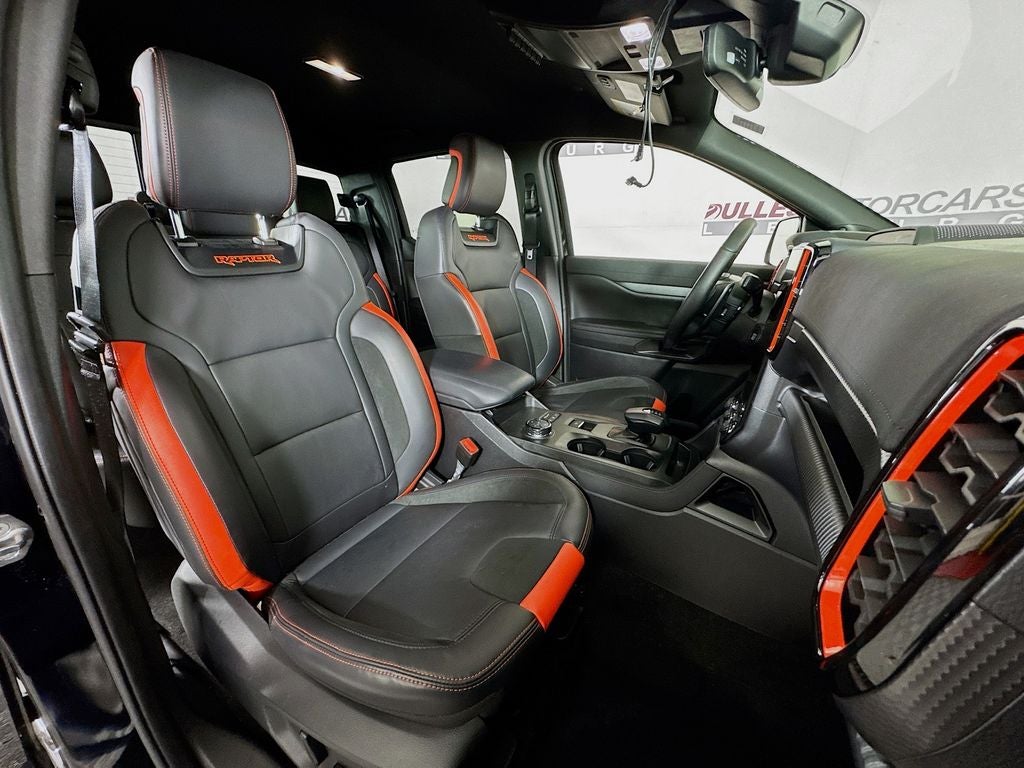 The Ranger Raptor's striking black exterior exudes a bold, commanding presence that is sure to turn heads wherever you go. Step inside the cabin and you'll be enveloped in a world of premium comfort and convenience, with features like leather-trimmed heated front bucket seats, a heated steering wheel, and a premium B&O sound system that will elevate your driving experience.